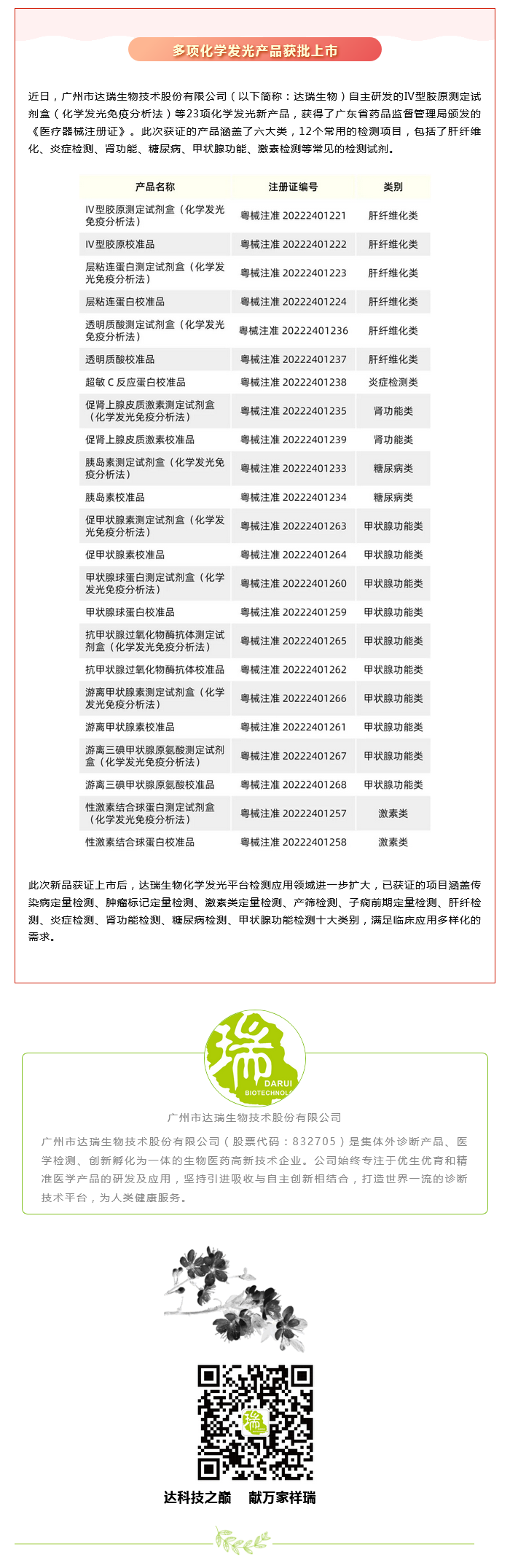 喜訊 | 達瑞生物八項化學發(fā)光產(chǎn)品獲批