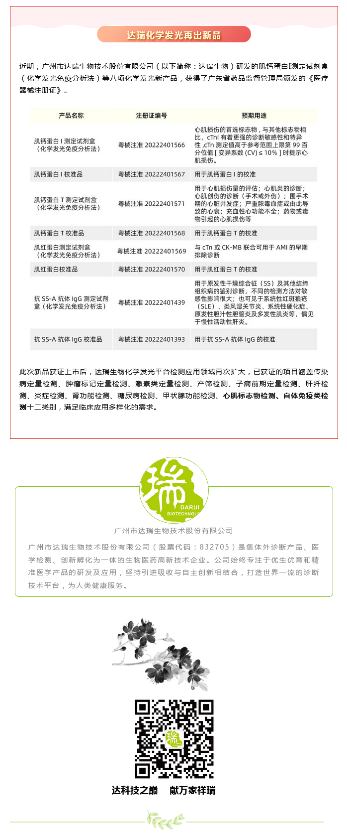 喜訊 | 達(dá)瑞生物多項化學(xué)發(fā)光產(chǎn)品獲批上市