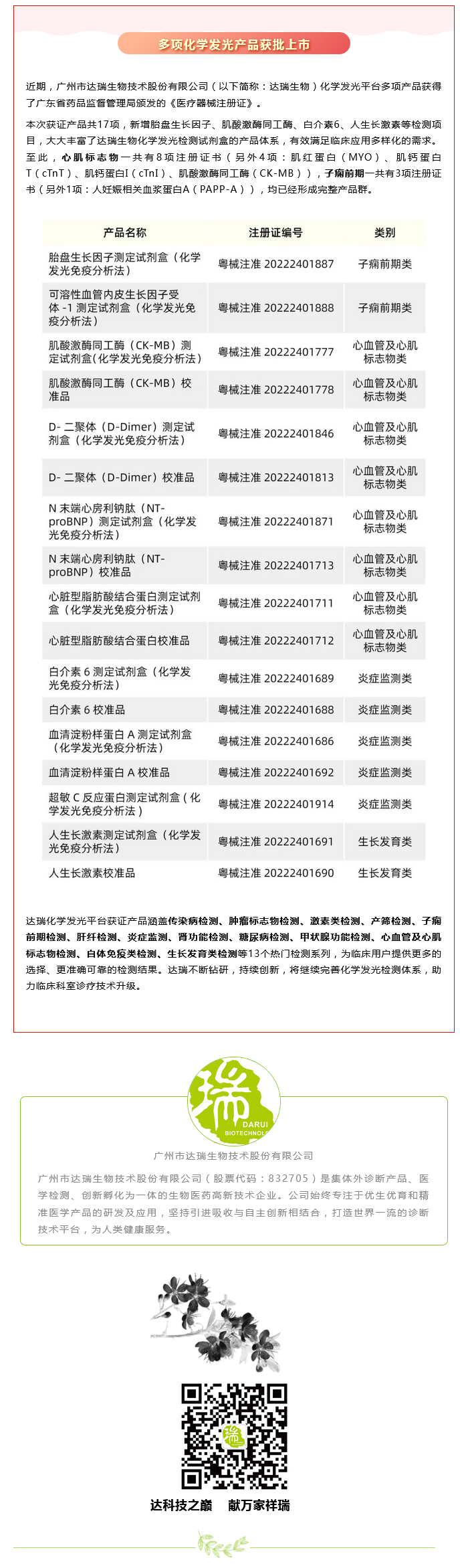 喜訊 | 達(dá)瑞生物17項(xiàng)化學(xué)發(fā)光產(chǎn)品獲批上市